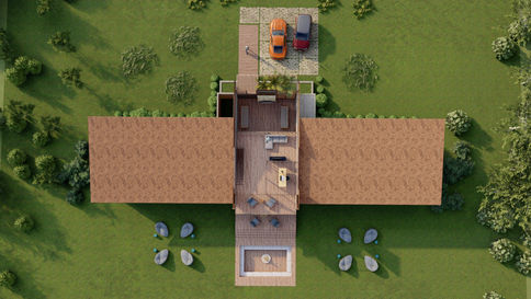 Casa aberta para mata e morro da Chapada com utilizações de materiais naturais e grandes conexões com área externa em todos os ambientes.